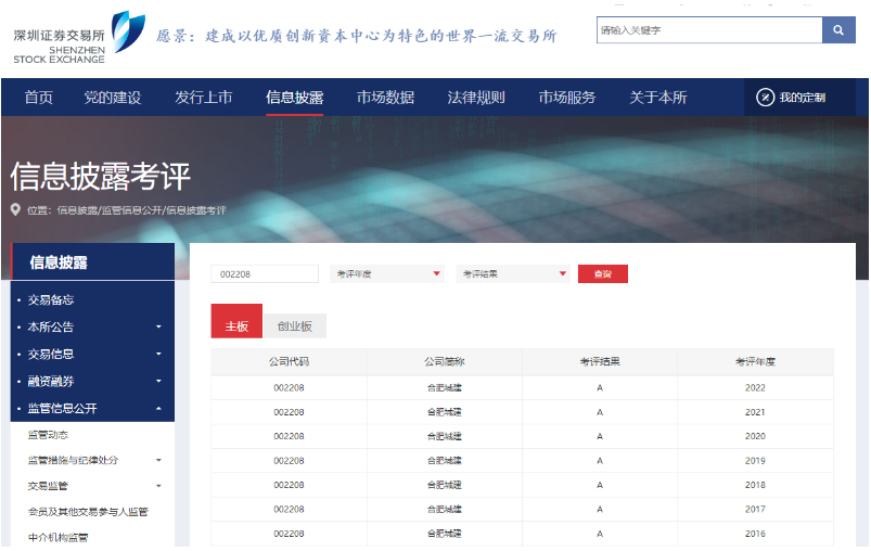 合肥城建獲評深圳證券交易所主板上市 公司2022年度信息披露考核A級