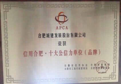 合肥城建榮獲“信用合肥?十大公信力單位(品牌)”榮譽(yù)